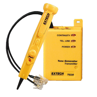 Тестер для проверки целостности телефонных линий, видеокабелей (75 Ом) и кабелей LAN/Тоновый генератор Extech TG30 предназначен для беcконтактной звуковой идентификации выбранного провода или кабеля. Легко отслеживает провод от источника до места разрыва. Настраиваемый контроль чувствительности улучшает идентификацию проводов и устраняет ложные обнаружения. Проверка целостности цепи - звуковая и визуальная индикация.