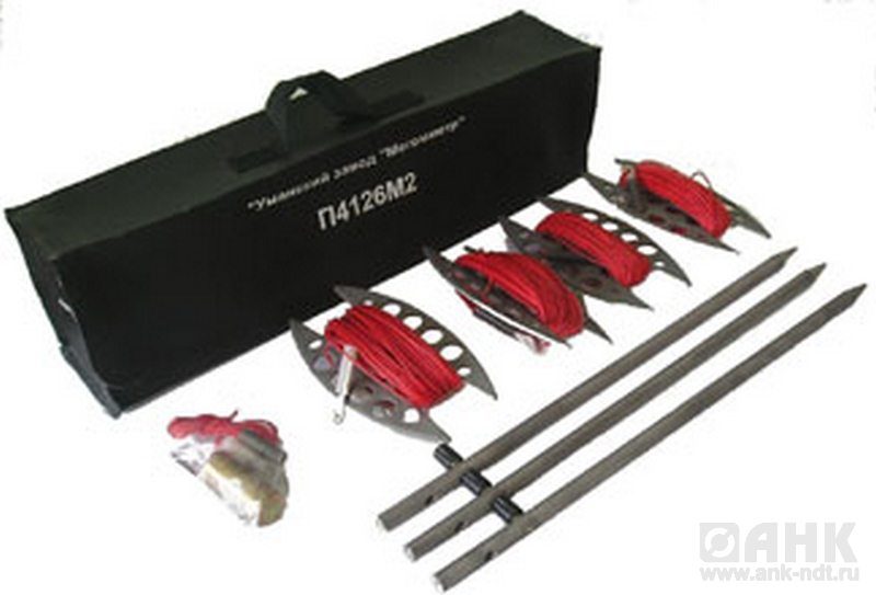• Комплект принадлежностей П4126М2 предназначен для работы с измерителем сопротивления заземлений Ф4103-М1 или другими измерителями, обеспечивающими работоспособность при таких же как у Ф4103-М1 или больших значений сопротивлений вспомогательных электродов.