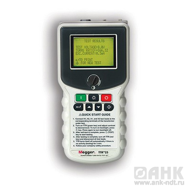 Прибор TTR25 способен с большой точностью высчитывать соотношение витков вплоть до 20000:1, а также самый малый ток холостого хода.