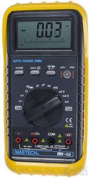 Практически все виды электро- и радиоизмерений, звуковой пробник проводимости (прозвонка) и возможность фиксации результата измерений делают его незаменимым в мастерской и на рабочем столе профессионала. Дополнительный изолирующий чехол удобен при измерении высоких напряжений или токов при высоком потенциале цепи. Встроенная в чехол откидная приставка и петля для подвески создают дополнительные удобства в работе. Автоматика мультиметра сама выберет нужный предел измерения, надо лишь выбрать род измерений. Цифровой ЖК-дисплей разрядностью 3¾ (максимальное индицируемое число 3260) оснащен псевдоаналоговой шкалой с частотой обновления индикации 12,5 раз в секунду. Линейная шкала незаменима при оценочных замерах или при контроле быстрых процессов - до 15 измерений в секунду. Она удобна и как логический пробник.
