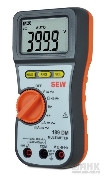 Мультиметр цифровой 189 DM осуществляет измерения напряжения постоянного/переменного до 1000 В/ 750 В в диапазоне до 100 кГц, тока постоянного/переменного до 400 мА, частоты до 100 кГц, ёмкости в диапазоне от 4 нФ до 4 мФ и производит прозвон цепи и проверку диодов.