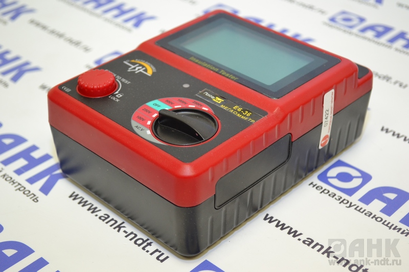 Мегаомметр цифровой ПрофКиП Е6-36  позволяет производить измерения в диапазоне от 0 Ом до 50 ГОм. Электрический тестер имеет 5 режимов тестирования с напряжением 100 В /250 В /500 В /1000 В /2500 В. Измеритель сопротивления изоляции ПрофКиП Е6-36  оснащен большим жидкокристаллическим экраном с подсветкой,  на котором отображаются результаты измерений и текущие режимы. Прибор ПрофКиП Е6-36  в состоянии измерять сопротивления изоляции от  электропроводки до сложных электротехнических устройств.