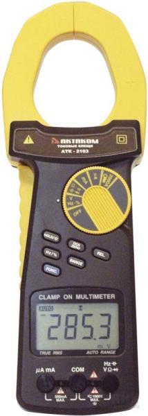 • Токовые клещи+мультиметр. Измерение пост. и перем. тока до 2000 А, пост. и перем. напряжения до 1000 В, сопротивления до 24 МОм, емкости 10 пФ...25 мкФ, частоты 10 Гц...100 кГц, тестирование p-n перехода, диаметр обхвата 50 мм, токовый датчик Холла,