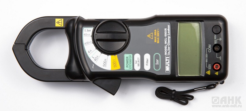 Клещи электроизмерительные, измерение перем. тока утечки/ резистивного тока  (Iо/ Ior) 0,4 мА…4 А, перемен. тока нагрузки 2…500 А (50/ 60 Гц), переменное напряжение до 500 В, 2 изм./сек, ЖК-дисплей (разрешение 4000); удержание показаний; автооткл. через 10 мин.; раскрытие 40 мм; 3 х 1,5 В тип «ААА»; 70 х 223 х 34 мм, 440 г