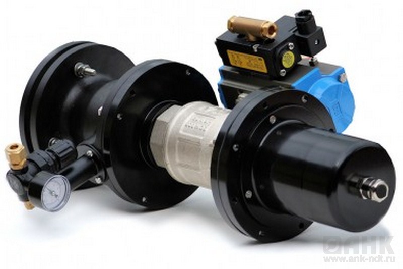 Встроенный шаровой клапан, смонтированный между каждым приемо-передатчиком и его аппаратом для продувки воздухом, действует как автоматический запорный клапан, который закрывается в случае нарушения подачи сжатого воздуха или электропитания.