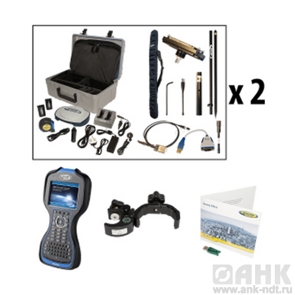 RTK-комплект из двух приемников Spectra Precision SP80, двух комплектов радиомодемов для SP80, контроллера Spectra Precision Ranger 3L, крепления контроллера на веху и программного обеспечения для постобработки Spectra Precision Survey Office Complete.