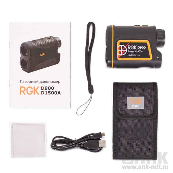 Комплектация: дальномер RGK D900, кофр, ремешок.