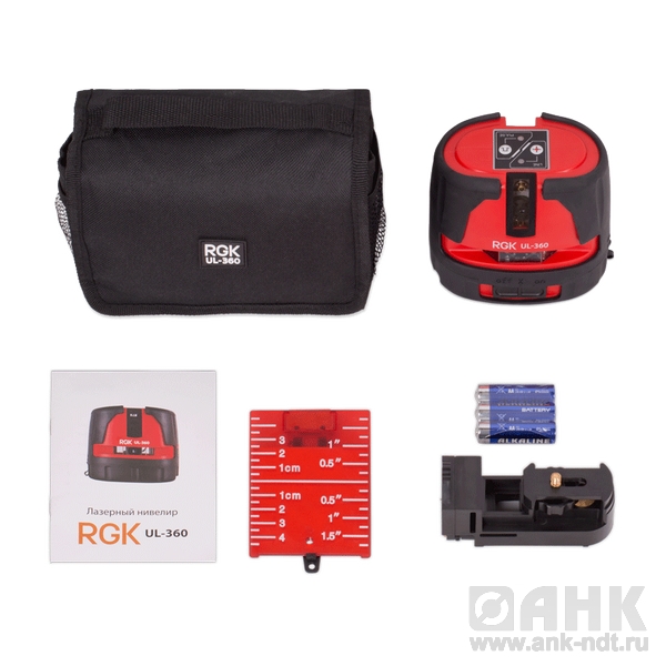 Для удобства нанесения разметки лазерный нивелир RGK UL-360 можно установить на штатив, для чего в нижней части устройства предусмотрена резьба 1/4”. Поставляемое в комплекте магнитное крепление даёт возможность закрепить нивелир на металлической поверхности на любой высоте, в углу комнаты или в другом недоступном месте. Проработанная конструкция корпуса и тщательно подобранные материалы обеспечивают надёжную защиту устройства нивелира от негативных факторов. Бесперебойное функционирование RGK UL-360 гарантировано в диапазоне от -5°C до +45°C, что позволяет работать с ним практически в любых помещениях.