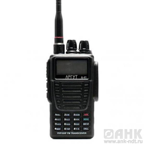 Учитывая пожелания пользователей Аргут А-41, была создана обновленная версия Аргут А-41 New. Данная модель сочетает в себе большой информативный дисплей, а так же наличие двух приемников, что позволяет всегда оставаться на связи практически с любой радиостанцией VHF и UHF диапазонов. Система меню разработана таким образом, что разобраться с функционалом сможет даже начинающий пользователь. Трансивер выполнен из противоударного пластика и имеет степень защиты IP-65, что позволяет использовать А-41 в экстремальных условиях. Благодаря таким изменениям, трансивер обладает превосходными техническими характеристиками и удовлетворит потребности самого взыскательного покупателя.