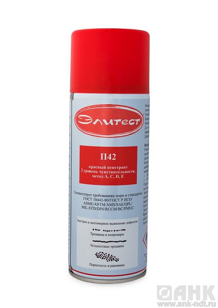 Элитест П42 - это новый продукт в мире расходных материалов для капиллярного контроля произведённый в России, изготовленный по лицензии NDT ITALIANA S.r.l. в соответствии с российскими и международными стандартами. Расходные материалы Элитест предназначены для использования в тех отраслях промышленности, где требуется особая достоверность в исследованиях: авиация, ракетная техника, атомная промышленность, судостроение, энергетика и т.д.