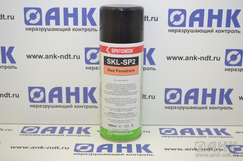 Spotcheck SKL-SP1 - ярко-красный пенетрант (краска для цветной дефектоскопии), удаляемый растворителем  серии Spotcheck  фирмы MAGNAFLUX. SKL-SP1 (краска для цветной дефектоскопии) показывает замечательные проникающие характеристики, которые обеспечивают максимальную надежность в определении месторасположения  поверхностных трещин  и неоднородностей.