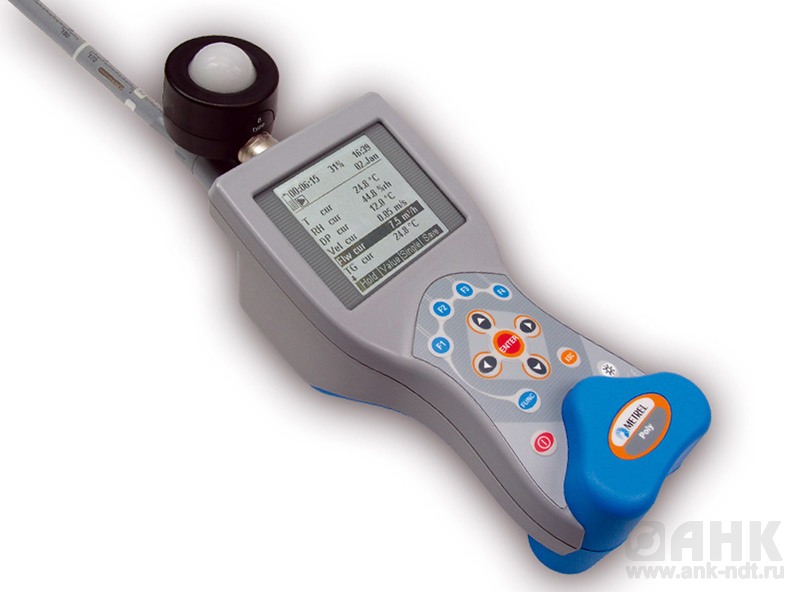 • В качестве опций поставляются: датчик СО, датчик СО2, датчик яркости, термопара типа К (измерение контактной температуры), шаровой термометр (измерение температуры излучения).