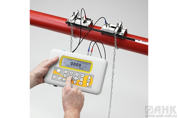 Прибор Portaflow 220 - ультразвуковой расходомер, в основе работы которого лежит измерение времени распространения ультразвукового сигнала. Когда ультразвук проходит между датчиками, скорость, с которой звук проходит сквозь жидкость, несколько увеличивается благодаря скорости прохождения жидкости по трубе. Когда ультразвук проходит в обратном направлении, поток жидкости замедляет скорость прохождения звука. Полученная разница скоростей прямо пропорциональна скорости потока в трубе. Измерив скорость потока и узнав площадь поперечного сечения трубы, легко можно вычислить объемный расход жидкости. Не требуется врезки в трубопровод. Установка и измерение занимает считанные минуты, и нет необходимости перекрывать поток или опорожнять систему!