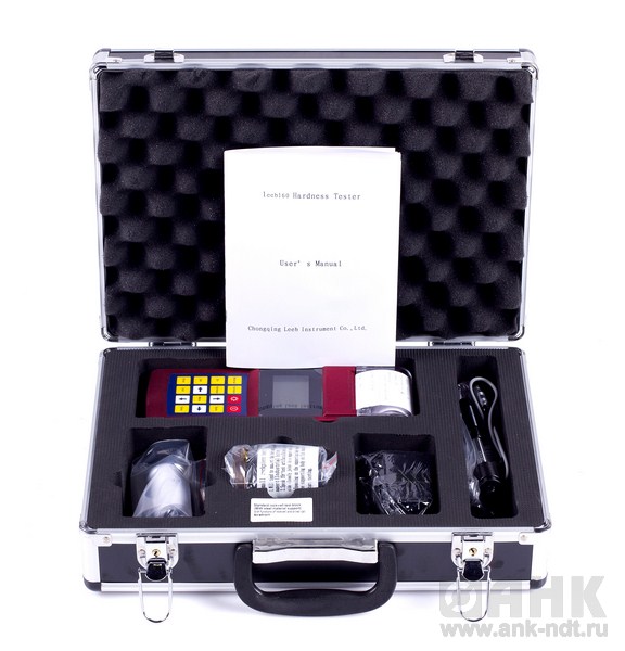 электронный блок, ударное устройство типа D, инструкция по эксплуатации, блок питания, малое опорное кольцо, чистящая щётка, образцовая мера твёрдости, сертификат, бумага для принтера.