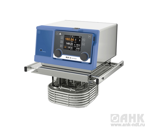 Контроллер беспроводной связи (WiCo) поставляется вместе с прибором. На графическом TFT дисплее можно наблюдать все важные параметры процесса. Одной кнопкой осуществляется переключение между внутренней и внешней регулировкой температуры. Для управления в многоязыковом меню применяются кнопки-маховики. Управлять устройством можно с расстояния до десяти метров за счет наличия инновационного контроллера беспроводной связи WiCo. Все устройства фирма IKA обладают сертификатами UL и относятся к самому высшему классу безопасности III (FL) согласно DIN 12876. Устройства данного типа отличает высокая скорость нагрева и стабильность температуры ± 0,01 K.