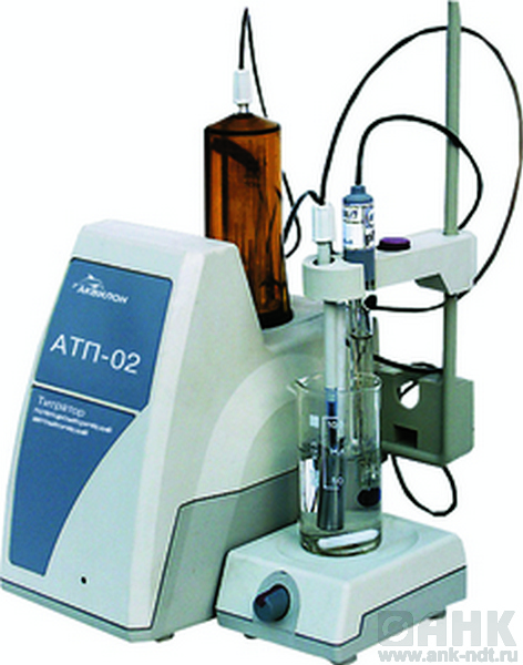 АТП-02 – автоматический высокоточный потенциометрический титратор. Прибор отвечает всем требованиям, предъявляемым к данному классу оборудования: непрерывная и дискретная подача титранта (диапазон от 0,1 до 36 мл/мин – при объёме дозирующего устройства 20мл; и от 0,25 до 90 мл/мин – при объёме дозирующего устройства 50мл), автоматическое изменение скорости подачи по мере приближения к точке эквивалентности или заданной точке и т.д.