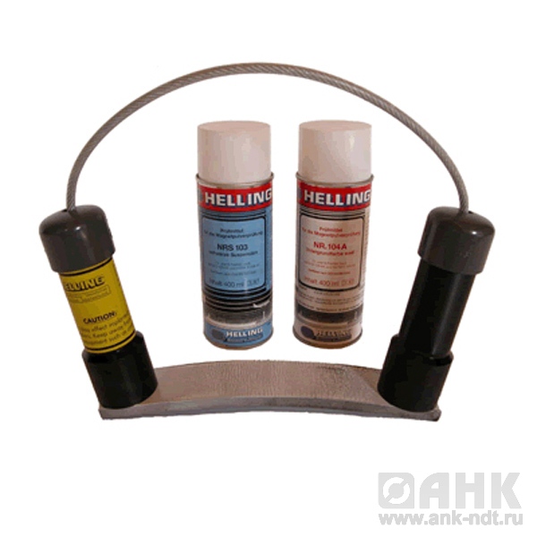 Комплект постоянный магнит Flaw Finder применяется для быстрого намагничивания исследуемой поверхности (ферромагнитные мотериалы), последующим нанесением белой фоновой краски (для темных поверхностей), нанесением магнито-порошковой суспензии и протоколирования выявленных дефектов.