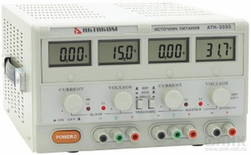 • 2x30 В, 2x3 А. 5В /3 А. Линейный. 3 канала. 4 цифровых 3-х разрядных LCD дисплея. Последовательное и параллельное соединение регулируемых каналов. Трекинг. Бюджетная серия.