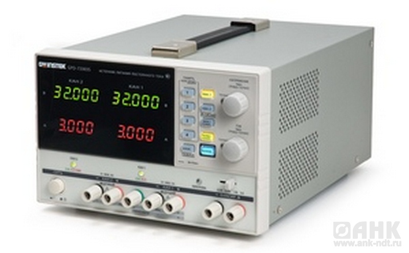 • 4 цифровых индикатора (2 вольтметра, 2 амперметра; послед. (60 В / 3 А) и парал. (30 В / 6 А) соединение выходов; автотрекинг; электронное отключение нагрузки; 4 ячейки памяти, интерфейс USB, масса 7 кг