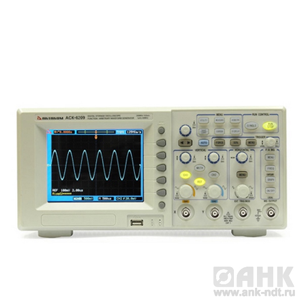 АСК-6209 представляет собой комбинированный прибор, сочетающий функции цифрового осциллографа и функционального генератора.
