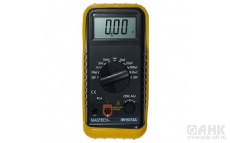 Цифровой измеритель ёмкости Mastech MY6013A позволяет измерять ёмкостные характеристики конденсаторов и участков электрических цепей. Он предназначен для измерения емкости с непосредственным выводом измеренного значения на 3½-разрядный ЖК-дисплей. Девять диапазонов позволяют точно измерять емкость от 0.1 пФ до 20 мФ практически любых конденсаторов, применяемых в электронике, в разрабатывающих лабораториях, на производстве, в сервисных центрах и школах. Батарейное питание, малый вес и размеры действительно позволяют отнести данный прибор к портативным измерительным устройствам.
