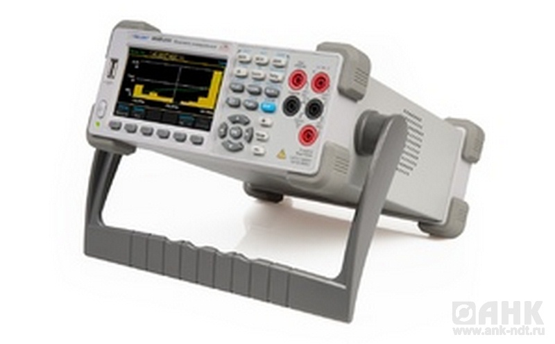 Вольтметр универсальный цифровой 4½ разрядов. Базовая погрешность 0,01% (DCV); пост. напряжение 600 мВ/ 6/ 60/ 600/ 1000 В; перем. напряжение (AC+DC) 600 мВ/ 6/ 60/ 600/ 750 В (до 100 кГц); пост. ток 600 мкА/ 6/ 60/ 600 мА/ 6/ 10 А; перем. ток (AC+DC, True RMS) 60/ 600 мА/ 6/ 10 А (до 10 кГц). Макс. разрешение: 0,01 мВ/ 0,01 мкА. Частота/ период (F/T)= 20 Гц /0,05 с…1 МГц/1 мкс; сопротивление 600 Ом/ 6/ 60/ 600 кОм/ 6/ 60/ 100 МОм (2 и 4-пр. схема), макс. разрешение 0,01 Ом, температура (t) = -270…+1820 °C (поддержка т/п: B, E, J, K, N, R, S, T/ термосопротивлений/RTD); емкость 2/ 20/ 200 нФ/ 2/ 20/ 200 мкФ/ 10 мФ, макс. разрешение 0,001 нФ; проверка непрерывности цепи, проверка p-n переходов. Измерение и отображение сразу 2-х параметров; переключаемая скорость измерений: 5/ 50/ 150 изм./сек; функции: вычисление min / max/ avg значений, дБм, дБ, режим удержания/сравнения, 8 математических функций, внутренняя память 1 ГБ (расширение внешним USB- flash), сохранение данных на USB-носитель. Встр. регистратор данных (10 К) с регулируемой скоростью выборки. Интерфейсы USBх2 (класс USBTMC), LAN, ПО EasyDDM (в комплекте); габариты 293 х 260 х 107; масса 3,76 кг.