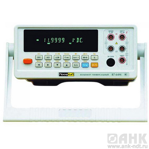 Универсальный вольтметр ПРОФКИП В7-64М предназначен для измерения: постоянного и переменного напряжений, силы постоянного и переменного токов, сопротивления постоянному току, частоты. Прибор обеспечивает измерение среднеквадратического значения (СКЗ) сигналов переменного тока несинусоидальной формы с большим коэффициентом амплитуды.