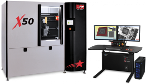 X50 — система позволяет сканировать объекты до 30 см и может использоваться для контроля отказов как непосредственно в лаборатории, так и на производственной линии. Такая конфигурация представляет собой идеальный баланс между мощностью и пространственным разрешением. Система оснащается микрофокусной рентгеновской трубкой открытого типа с максимальным ускоряющим напряжением 240 кВ (нанофокус, микрофокус) и минимальным фокальным пятном 0,5 мкм. Кроме того, имеется возможность установки рентгеновской трубки Dual-Head конфигурации (замена массивной мишени на прострельную и наоборот). Детектор рентгеновского излучения Varex с размером матрицы до 40 х 40 см, позволяющий получить максимальное разрешение и высокий контраст отдельных деталей изображения, с дополнительной вольфрамовой защитой электроники, которая увеличивает срок его эксплуатации. Реализовано шестиосевое позиционирование (вращение, перемещение образца в плоскости держателя, перемещение детектора вдоль оптической оси и наклон платформы +20°/–20°) с режимом микропозиционирования в горизонтальном и вертикальном направлениях — для точного выбора интересующей области сканирования и общего сокращения времени съемки. Поставляется с собственным программным обеспечением для режимов сканирования: цифровая двухмерная рентгенография, трехмерная компьютерная томография с пакетом сверхбыстрой реконструкции и четырехмерная томография (возможность дополнительно проводить механические, температурные испытания, включая движение образца во время съемки). Система имеет возможность проведения координатных измерений и использует аппаратно-программный модуль vorteX для спирального сканирования.