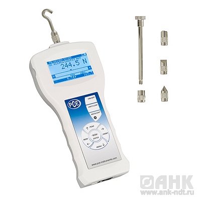 Динамометр серии PCE-FB имеет графический автоматически настраиваемый дисплей, изображение на котором поворачивается вслед за положением прибора. Сохранение данных выполняется как вручную, так и автоматически с заданным интервалом (0,1 до 99,9 сек.). Большая емкость памяти в общем на 800 значений обеспечивает широту применения прибора. Прибор имеет несколько статистических функций для анализа данных, а также позволяет строить графики и гистограммы. Все результаты могут быть переданы на компьютер и представлены в форме отчета.  Одновременно на дисплее могут быть показаны текущие значения, минимальное и максимальное значение, что обеспечивает функция PEAK.