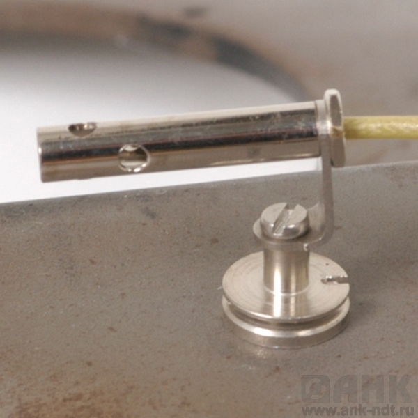 Компактный по размеру и небольшой по весу датчик оснащен сильным самарий-кобальтовым магнитом. Магнит изолирован от рабочей части датчика, чтобы не воздействовать на температуру изделия. Датчик удобен для использования на круговых поверхностях, например на трубах.