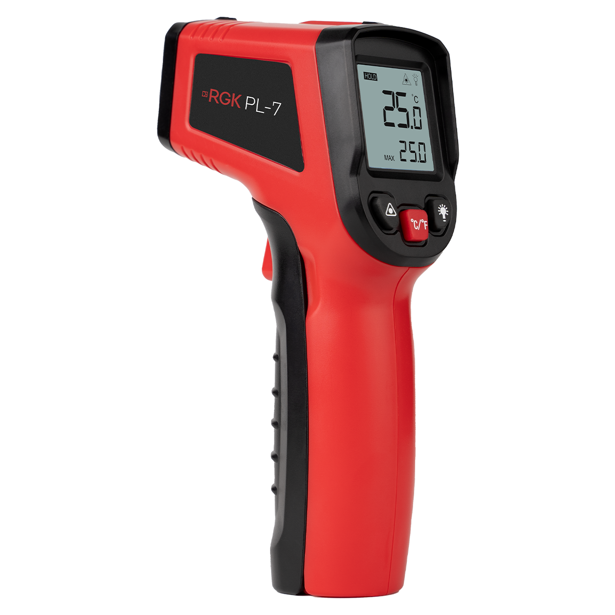 Пирометр RGK PL-7 – профессиональный прибор для бесконтактного измерения температуры, который всегда можно иметь при себе. Рабочий температурный диапазон модели - от -30 до +400 °С, при этом погрешность не превышает ±2 °С, что позволяет быть уверенным в достоверности измерений.