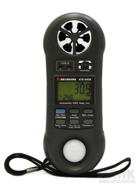 Данный прибор сочетает в себе сразу четыре изделия в одном корпусе. Вы можете с помощью одного изделия провести измерения скорости воздушного потока, влажности, измерить уровень освещенности и температуру. Температура измеряется с помощью выносной термопары. При наличии в данном изделии всех указанных величин прибор выполнен очень компактно и эргономично. Нажатием одной кнопки выбирается нужный режим измерений — и прибор уже готов к работе.