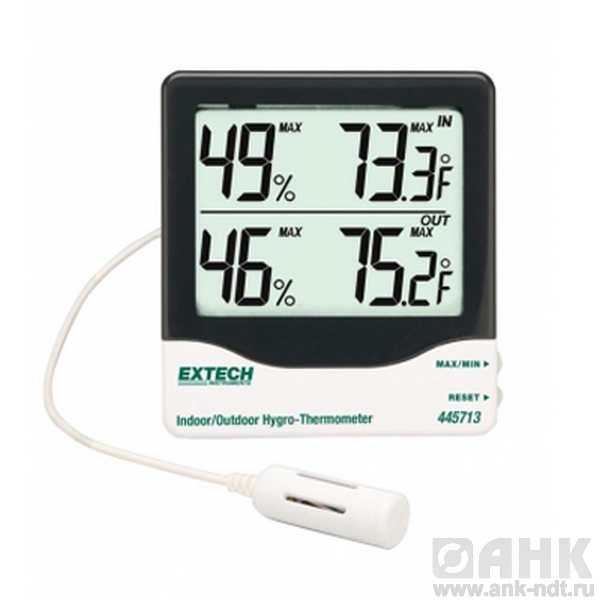 Описание гигротермометра Extech 445713 с большим ЖК-дисплеем