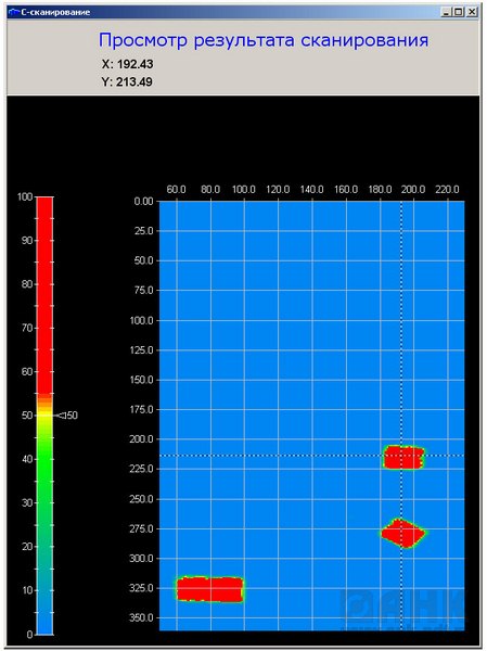 В системе АСНК-ВАЛ используется новейший ультразвуковой промышленный дефектоскоп УМД-100, с предварительным усилителем. В реальном времени дефектоскоп отображает на экране ПК принятый ультразвуковой сигнал, а по команде от ПК, производит запись результата контроля с заданным шагом, синхронно с движением сканера по оси X, Y, Z или вращением вала – оси W.