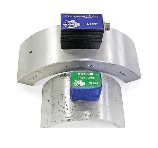 Наклонные совмещённые контактные преобразователи типа П121 предназначены для контроля гибов труб различного диаметра. Рабочие частоты: 1,8 Мгц, 2,5 МГц и 5 МГц.