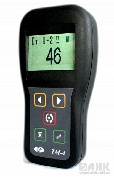 Толщиномер ТМ-4 совмещает два режима работы : магнитный (на низкой частоте) для контроля покрытий на ферромагнитном основании и вихретоковый (на высокой частоте) для контроля покрытий на неферромагнитном основании. Толщиномер имеет память на 5000 результатов измерений, интерфейс RS232 для подключения к ПК, режим выборочного усреднения результатов и возможность программирования до 15 аппроксимационных шкал, как с клавиатуры прибора, так и с персонального компьютера.