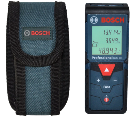 Высокая точность, защищённость от случайных повреждений и привлекательная цена Bosch GLM 40 являются его основными преимуществами. При этом лазерная рулетка обладает всеми необходимыми функциями: прибор способен складывать результаты, осуществлять непрерывные измерения и сохранять до 10 результатов замеров во встроенной памяти. Благодаря этому вам не придётся постоянно держать при себе карандаш и бумагу для записей или калькулятор для вычислений.