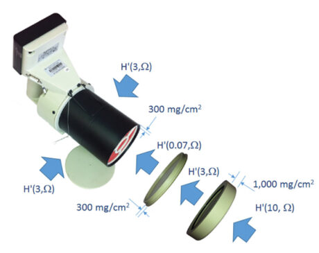 При проведении измерений используются сменные тканеэквивалентные насадки различной радиационной толщины (0,07мг/см2, 300 мг/см2, 1000 мг/см2, высокоэнергетическая).