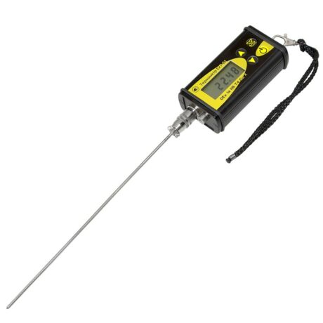 - Компактный электронный блок легко размещается в кармане спецодежды, механизм быстрого и надежного подключения датчика позволяет установить термометр в рабочее положение непосредственно перед измерением. Это позволяет сохранить рабочую температуру электронного блока в холодное время года и уберечь его от повреждений при перемещении термометра между местами проведения измерений.